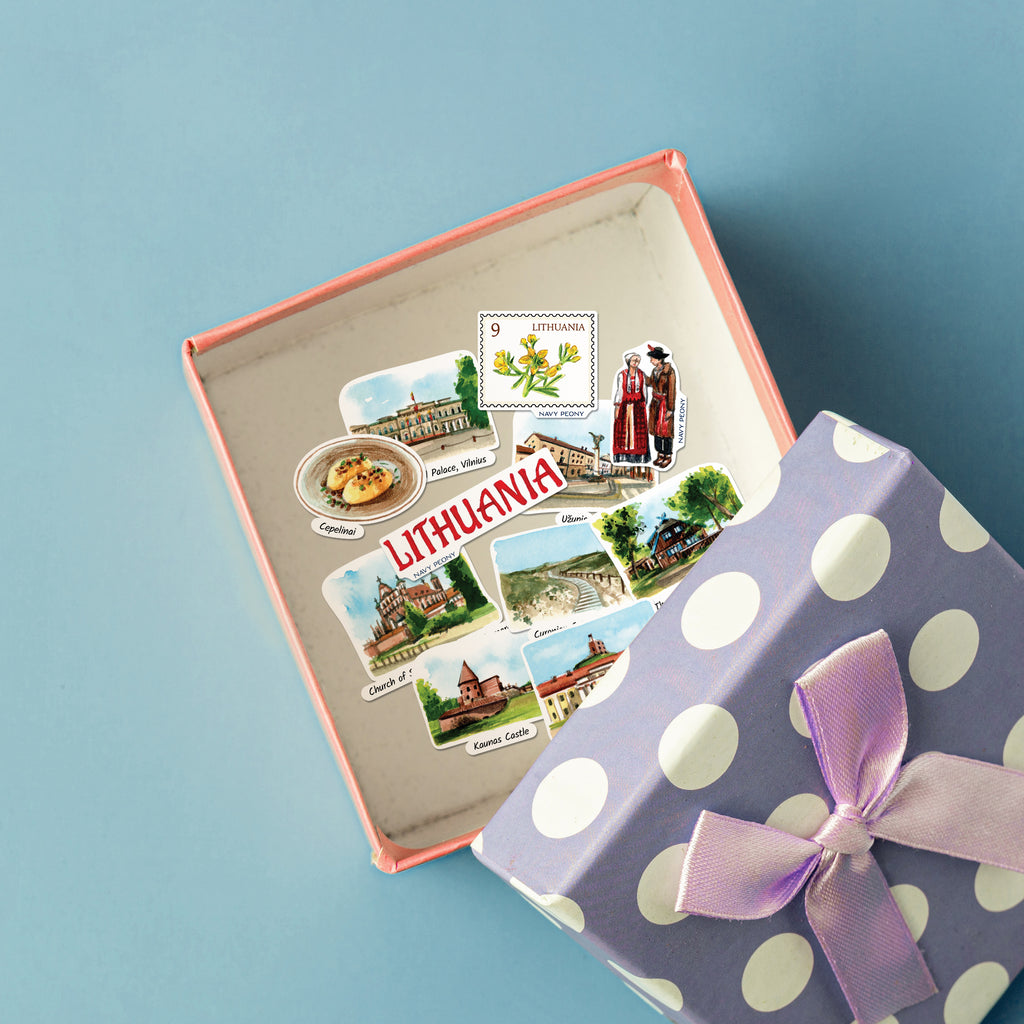 - LITHUANIA IN EVERY DETAIL. Step into the soulful Baltic charm of Lithuania with our 28-piece Travel Sticker Set. Each intricately designed die-cut sticker brings the country’s castles, cuisine, and cultural quirks to life—perfect for scrapbooks, journals, or as keepsakes from your Baltic adventures.