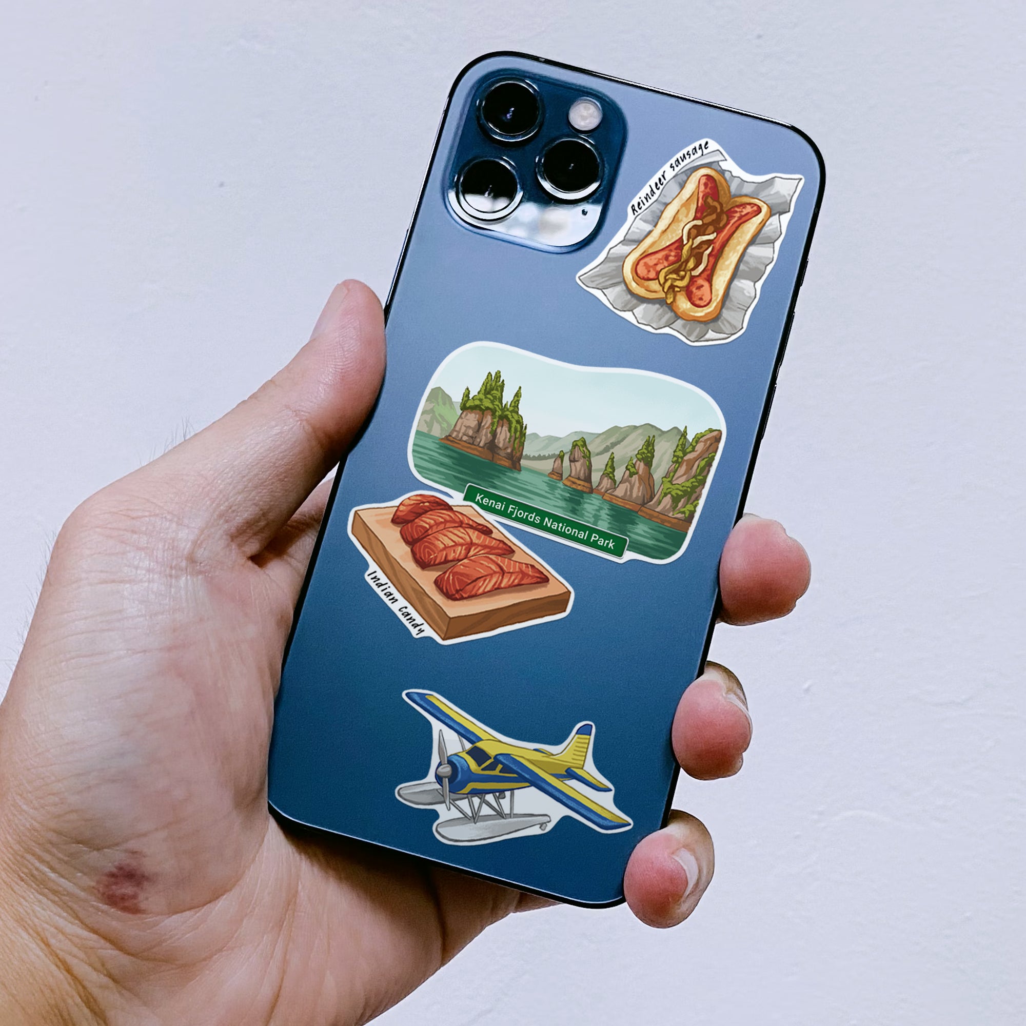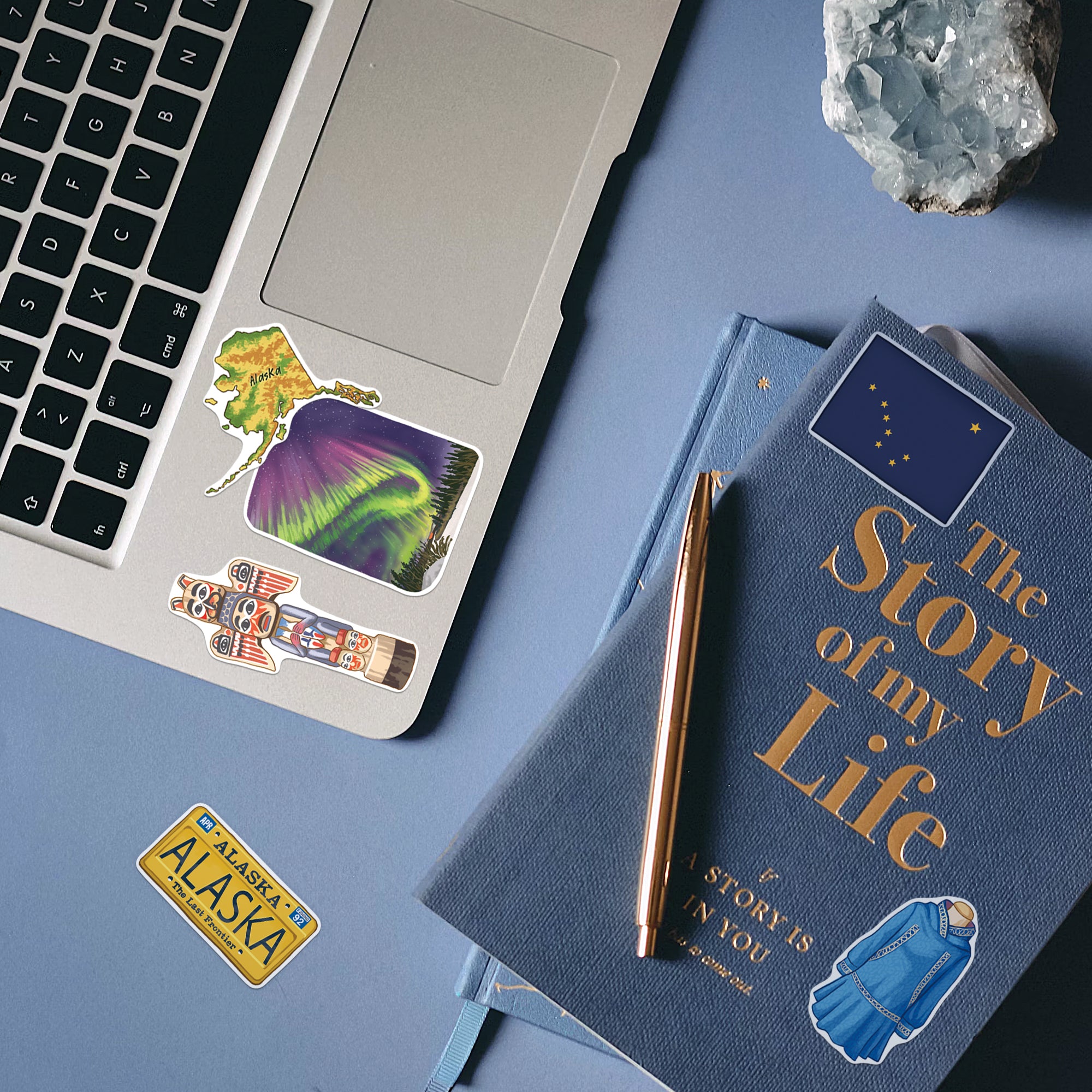 ALASKA WILDERNESS ADVENTURE. Embark on an unforgettable journey through the rugged beauty of Alaska with our 28-piece Alaska Sticker Set. From stunning landscapes to traditional culture, each die-cut sticker is crafted to capture the essence of the Last Frontier, making your travel memories stand out.