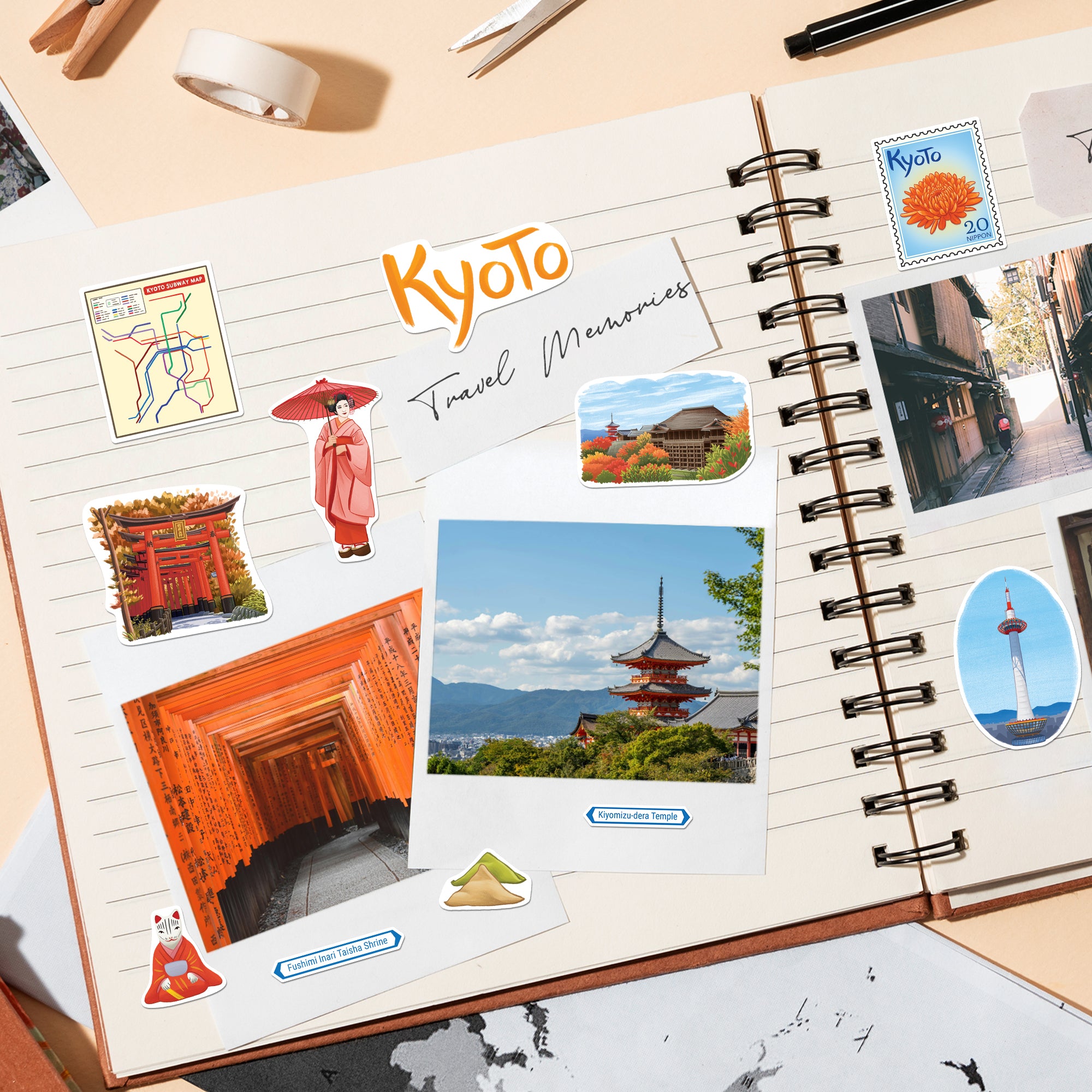 - AUTHENTIC CITY DETAILS. Includes a Kyoto subway map, signature station sign, and Chrysanthemum city flower, adding a true sense of place to your journaling and creative projects.