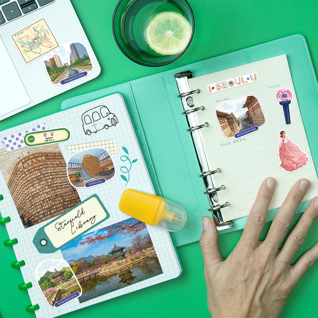 - STICKERS THAT SING SEOUL. Step into the rhythm of Korea’s vibrant capital with our 28-piece Seoul Travel Sticker Set. From centuries-old palaces to the neon buzz of Gangnam, each die-cut sticker captures the harmony of tradition and trend that makes Seoul truly unforgettable.