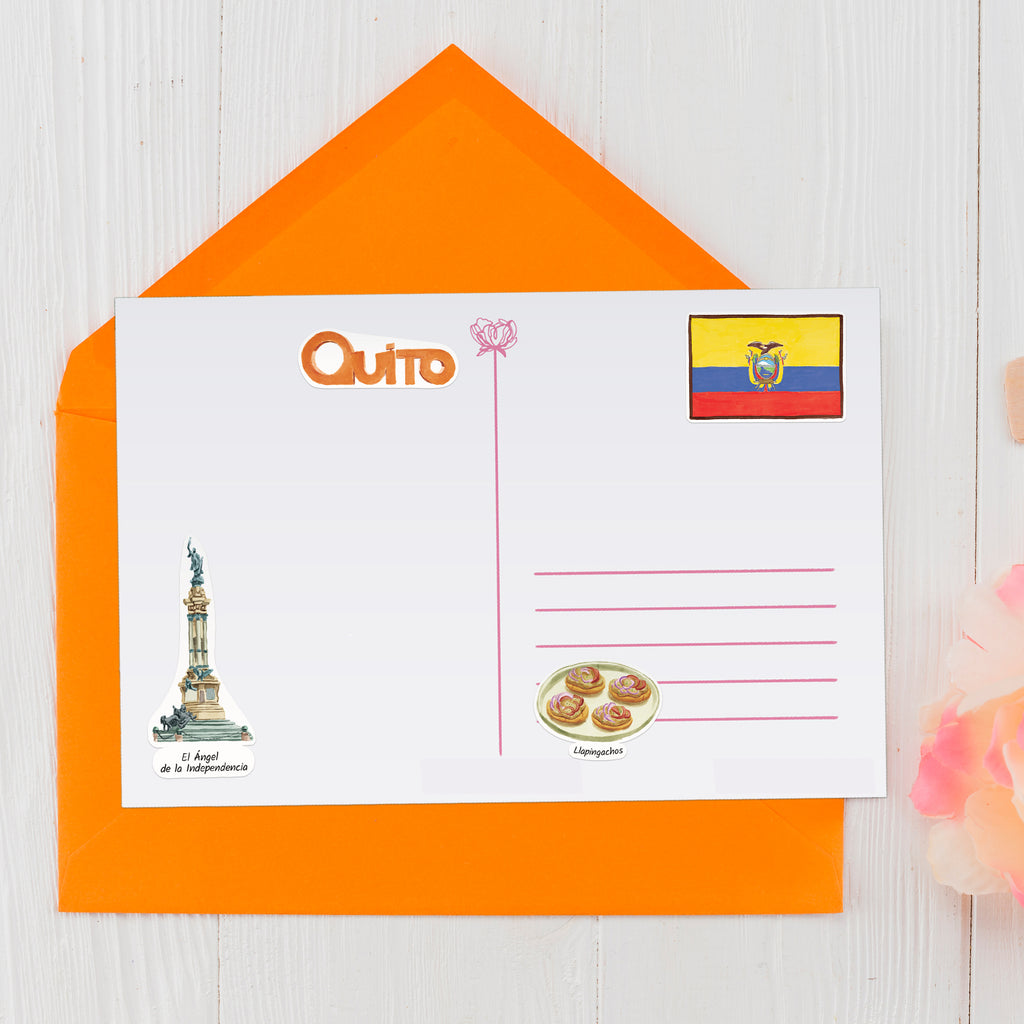 - FLAVORS OF ECUADOR. Stick on a taste of the country with watercolor icons of hornado, llapingachos, and guaguas de pan. Finished with the chuquiraga jussieui flower and Virgen de Quito stamp, this set blends cuisine, nature, and tradition.