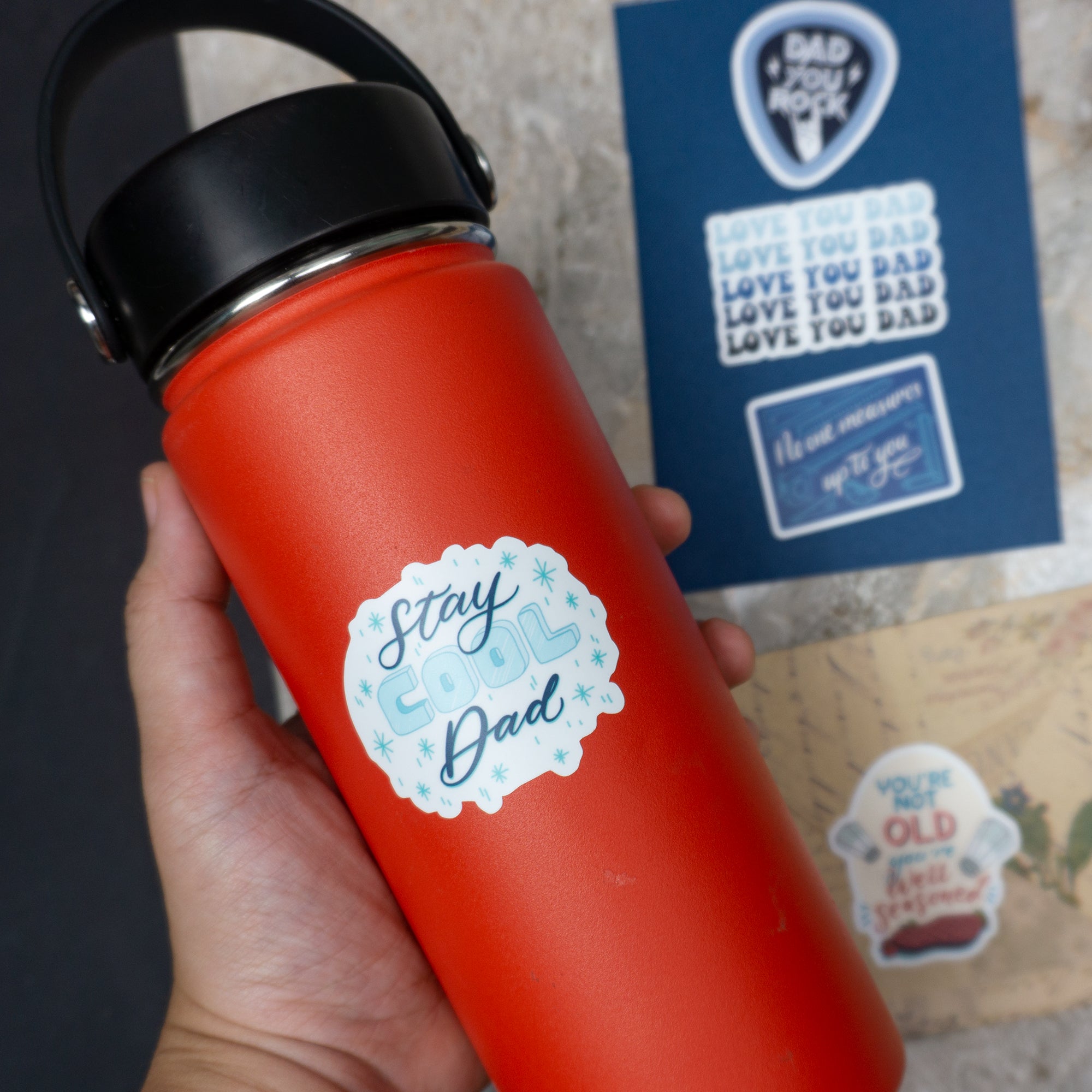 - COOL, ORIGINAL & UNIQUE DESIGNS. Featuring humorous sayings in cool and cheerful colors and bold fonts, these stickers are designed to celebrate all the amazing things fathers do every day with relatable designs about father figures such as food, beer, and woodwork.