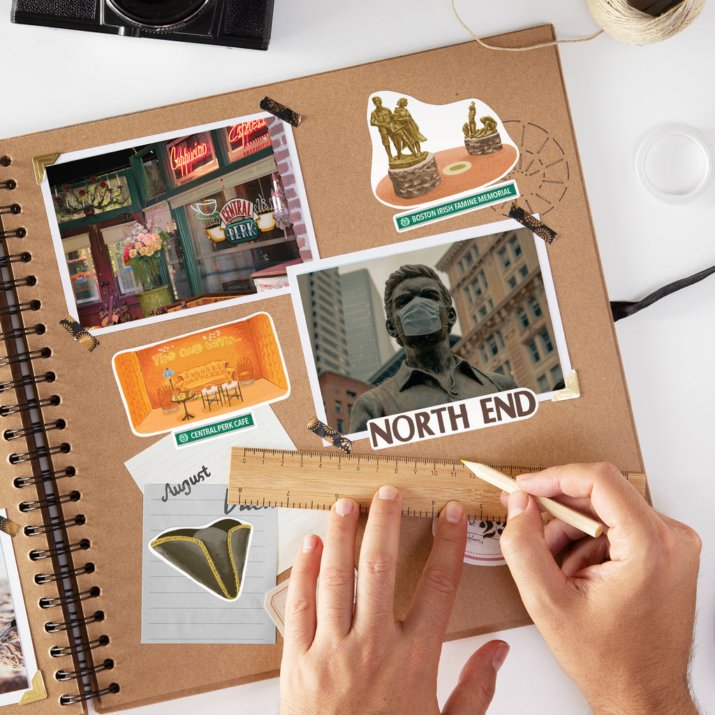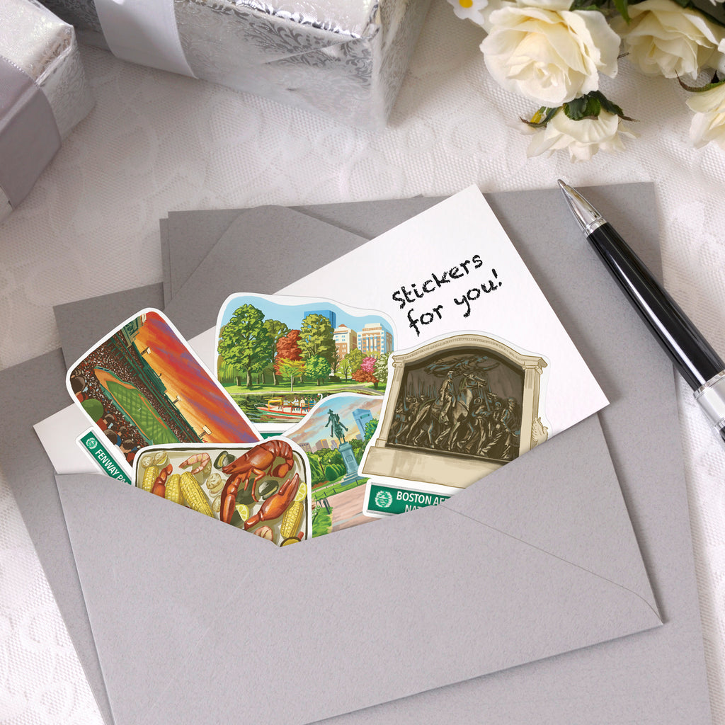 - BOSTON IN GOUACHE. Celebrate one of America’s oldest cities with our 28-piece Boston Travel Sticker Set. From colonial history to modern landmarks, each die-cut sticker is a piece of Boston to decorate journals, scrapbooks, and keepsakes.