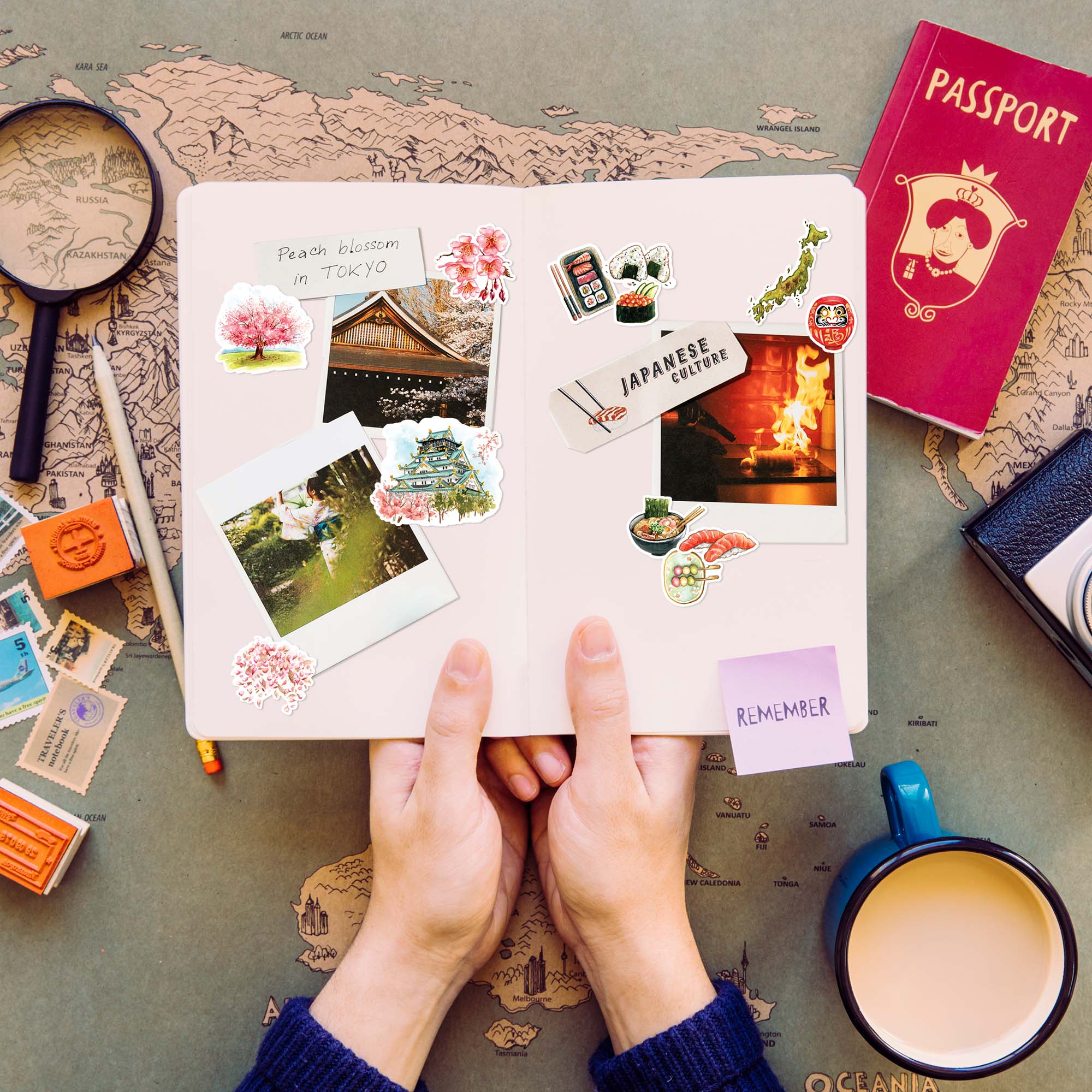- 29 PIECES OF DIE-CUT TRAVEL STICKERS giving you an assortment of hand-painted watercolor stickers with intricate details. Most sticker sizes are 1-1.5 inches, while five pieces are 2 inches long. These cute asian stickers are made in an excellent size to fit perfectly in your scrapbook and travel journal for memory-making. They are also great materials for making a travel vision board to plan for your next trip!