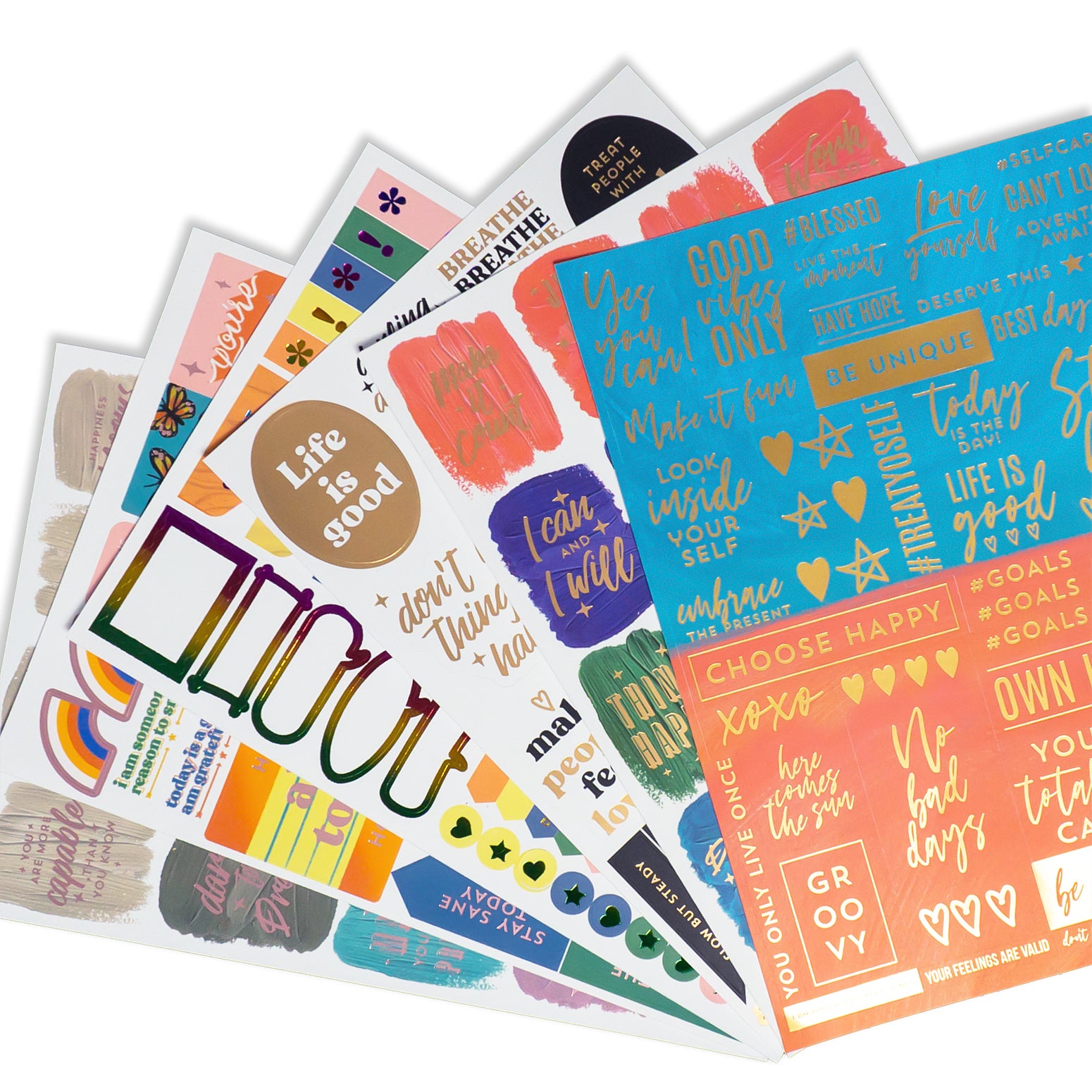 Motivational Quote Sheet Planner Stickers (6 Sheets, 270+ Stickers)