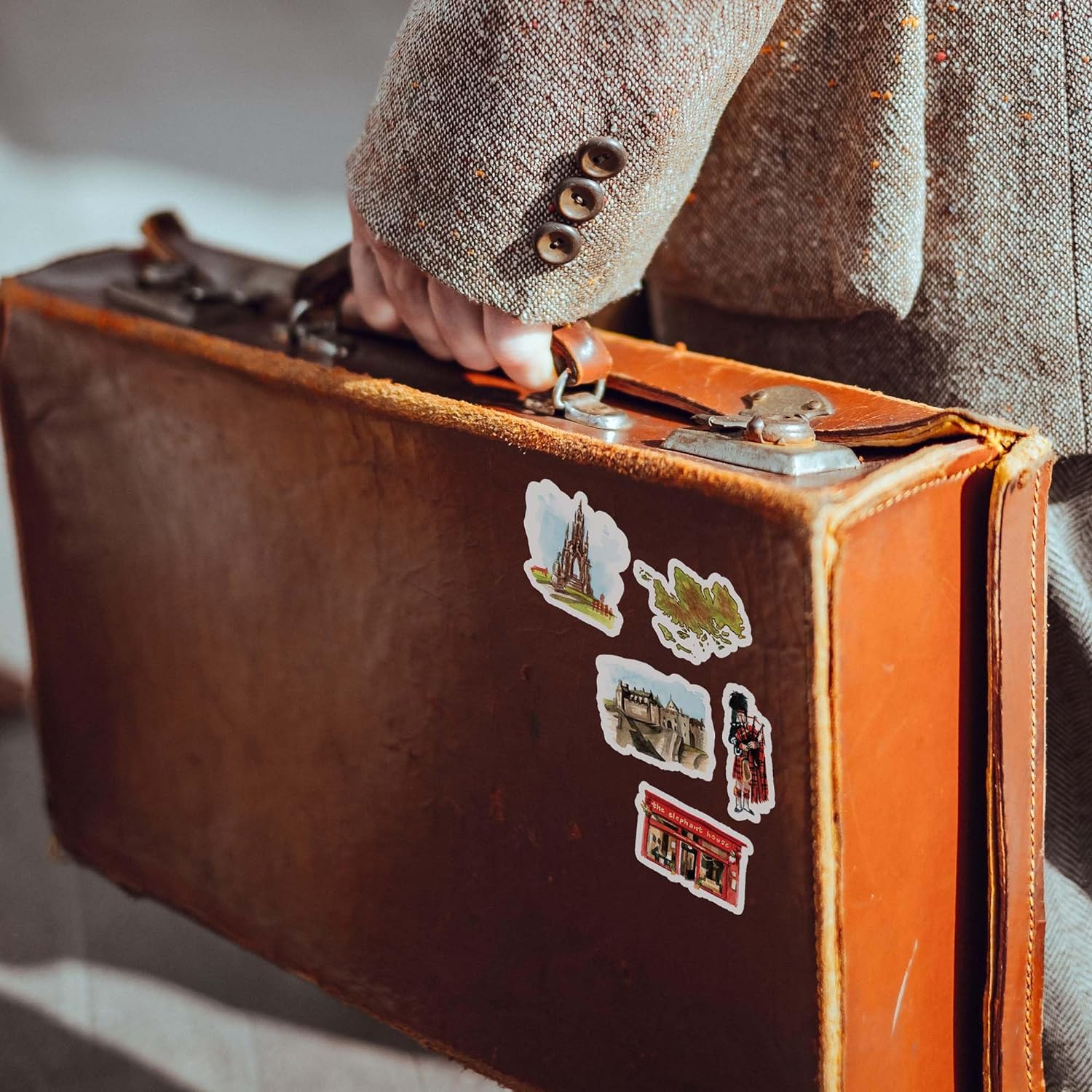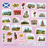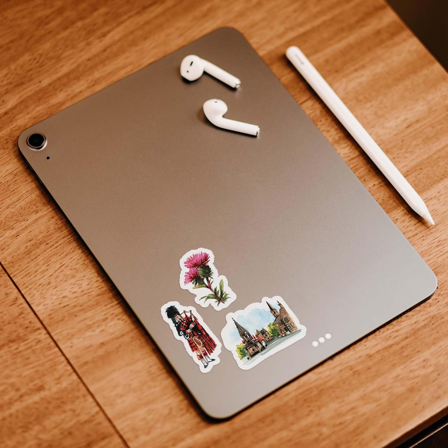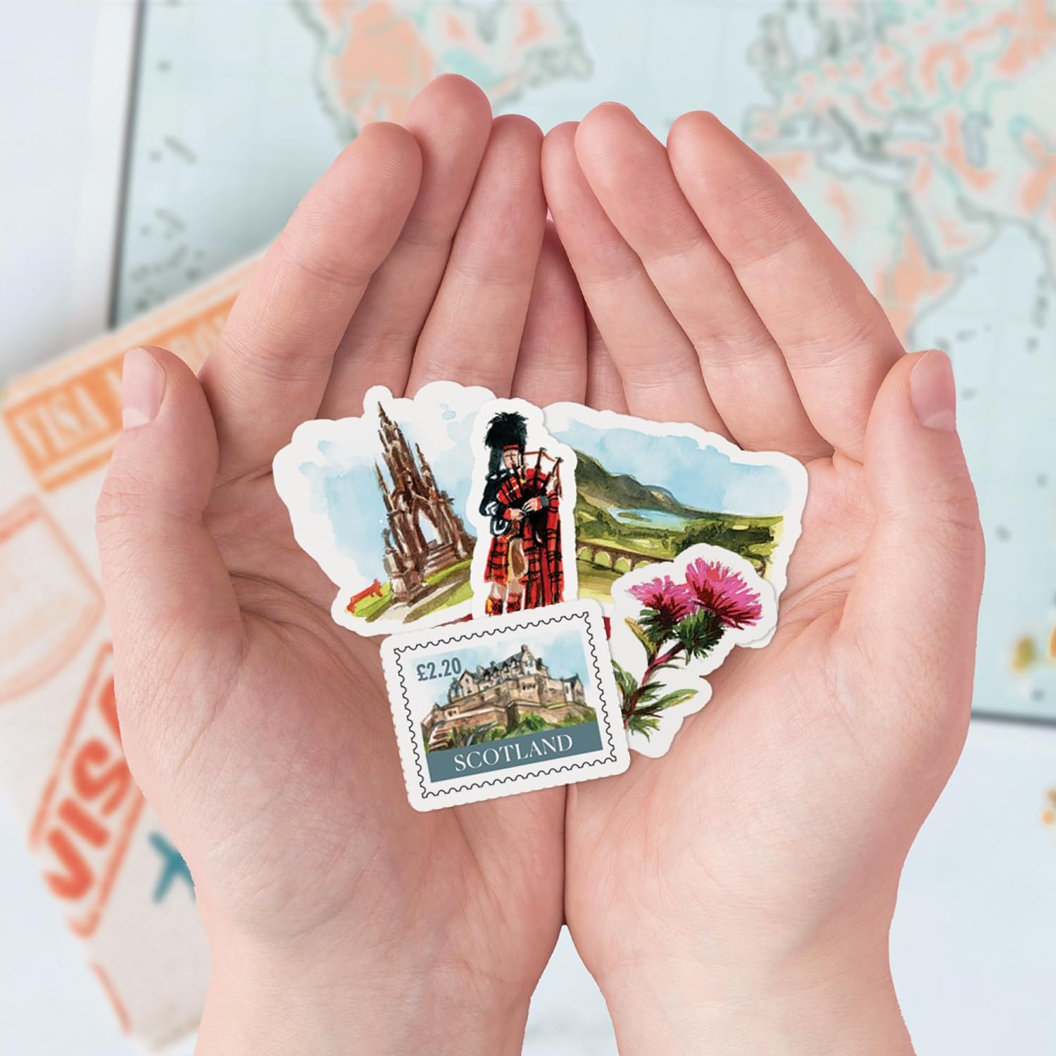 - 30 PIECES OF DIE-CUT TRAVEL STICKERS. Set out on a Scottish exploration with our carefully cut assortment of 30 stickers, meticulously designed to encapsulate the essence of Scotland. Each sticker beautifully represents Scotland's landscapes, culture, and iconic landmarks, ensuring a keen eye for detail. Ranging in size from 1 to 2 inches, these stickers make excellent embellishments for your travel scrapbooks, journals, photo albums, and travel vision boards.