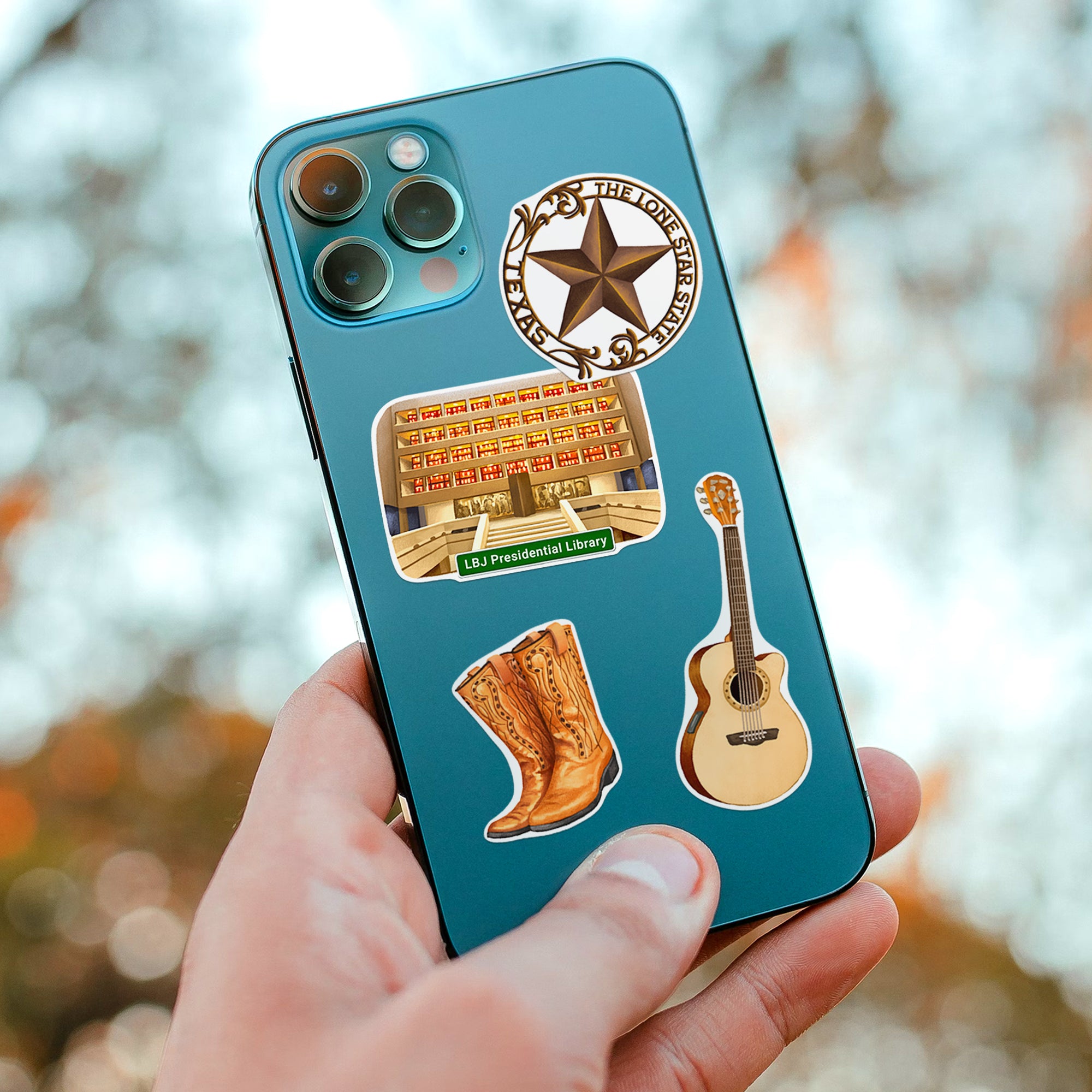 IMMERSIVE TEXAS EXPERIENCE. Dive into the heart of the Lone Star State with our captivating travel sticker set. Each sticker is a vibrant tribute to Texas' rich history, diverse landscapes, and iconic culture. Capture the essence of Texas with stickers featuring the state flag, a detailed map, and the iconic Texas stamp.