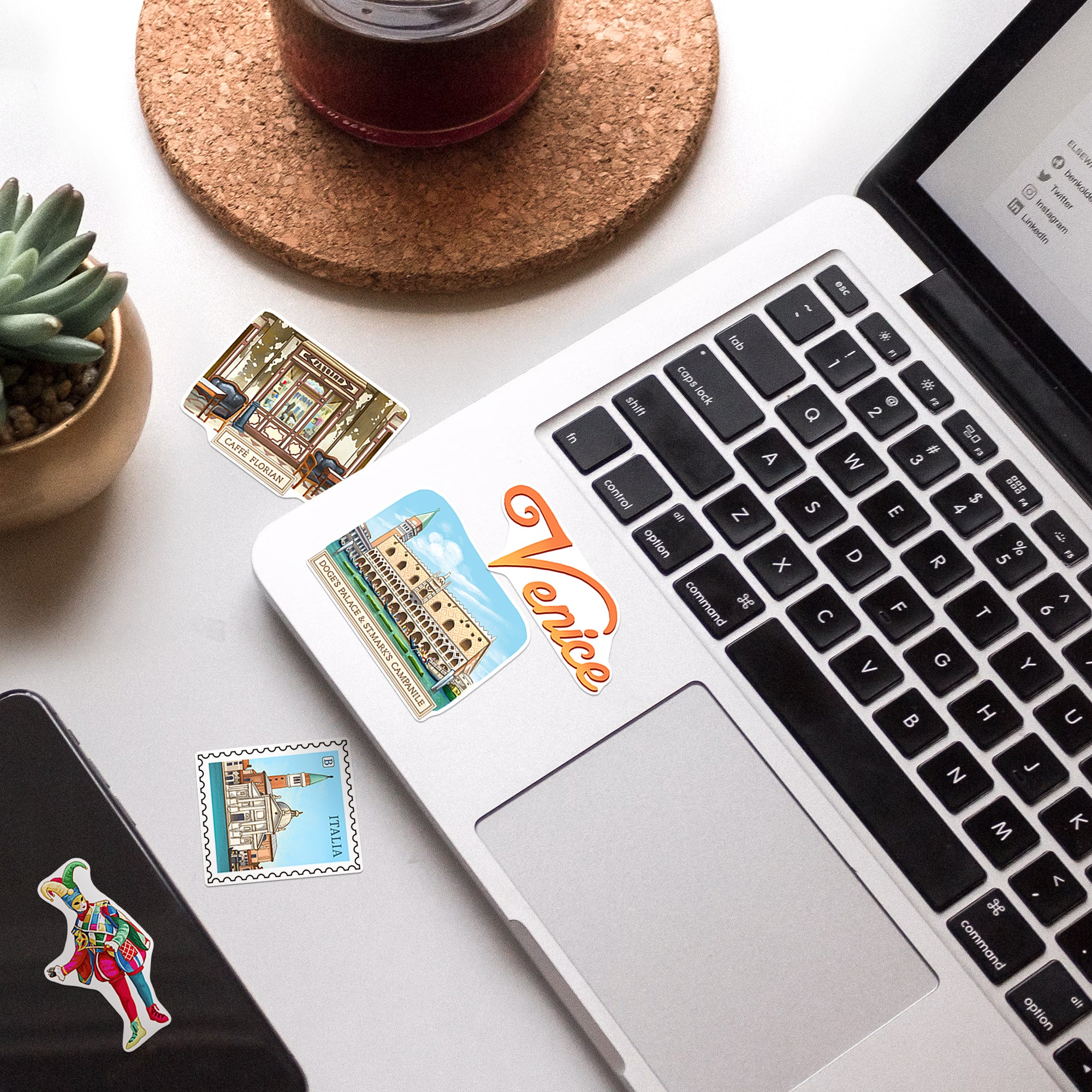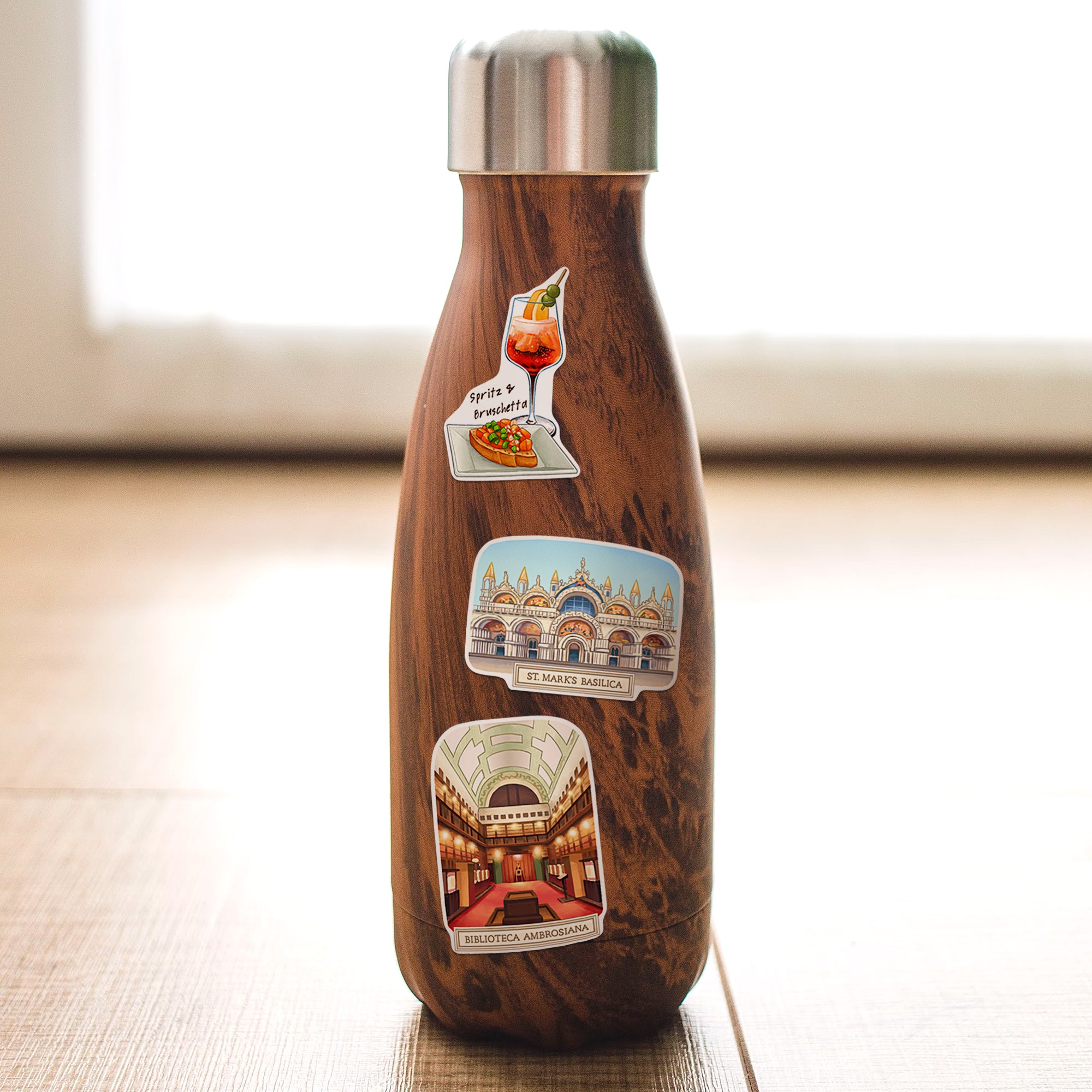 NORTHERN ITALY ADVENTURE. Immerse yourself in the charm of Northern Italy with our travel stickers. This collection of 28 intricately crafted, die-cut stickers takes you on a visual journey through the iconic beauty and rich culture of this enchanting region. Each sticker is a snapshot of Italy's northern wonders, perfect for adding a touch of elegance and heritage to your keepsakes.