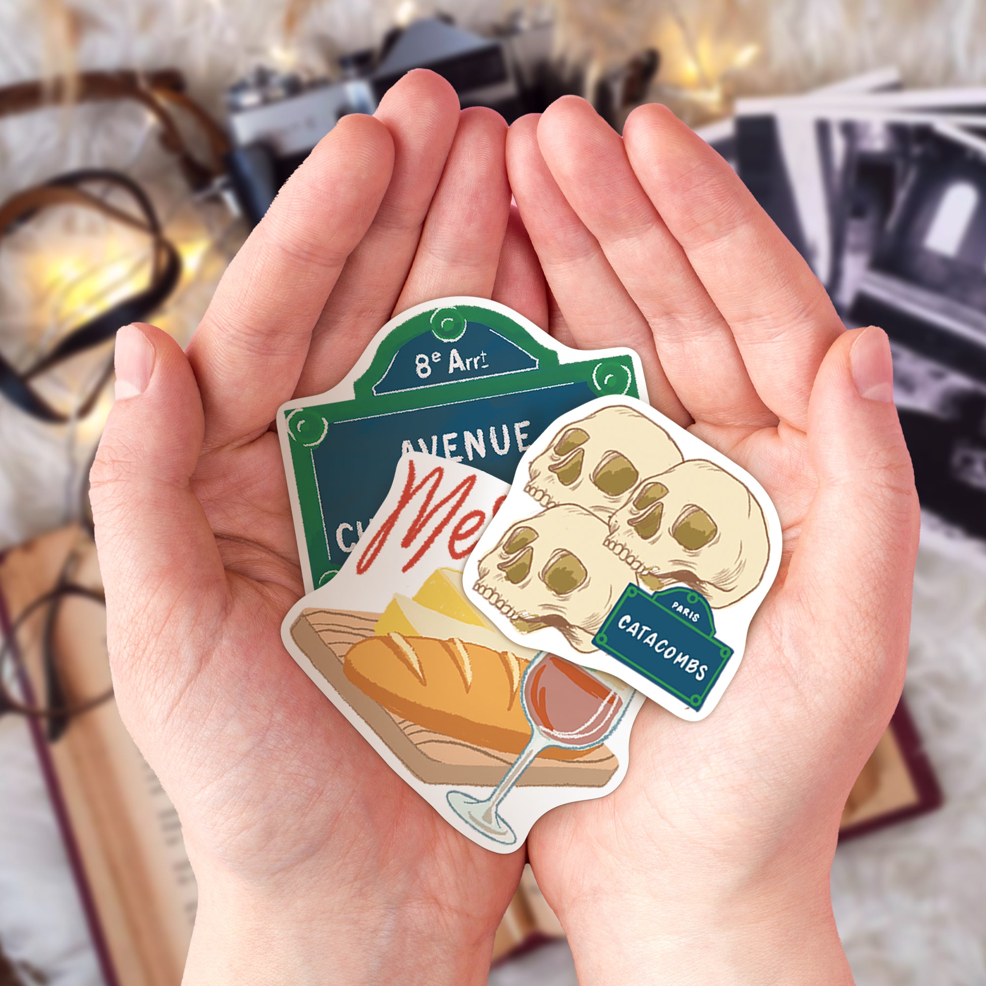 - 25 PIECES OF PARISIAN DIE-CUT STICKERS giving you an assortment of hand-illustrated stickers in gouache brushes. 17 pieces of the vacation stickers are around 1.5-3 inches big, while 7 pieces are 1-1.5 inches. The Louvre sticker is about 3.5 inches in length. These stickers are made in a good size to fit perfectly in your scrapbook and travel journal for memory-making. They are also great materials for you to make a travel vision board to plan for your next trip!