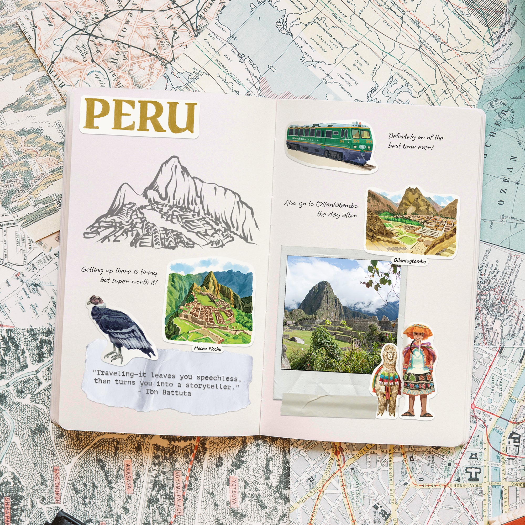 - COLORFUL PERU IN EVERY STICKER. Journey through the heart of the Andes with our 28-piece Peru Travel Sticker Set. From ancient ruins to vibrant culture, each die-cut design captures the spirit of Peru—ready to bring your travel journals, scrapbooks, or gear to life.