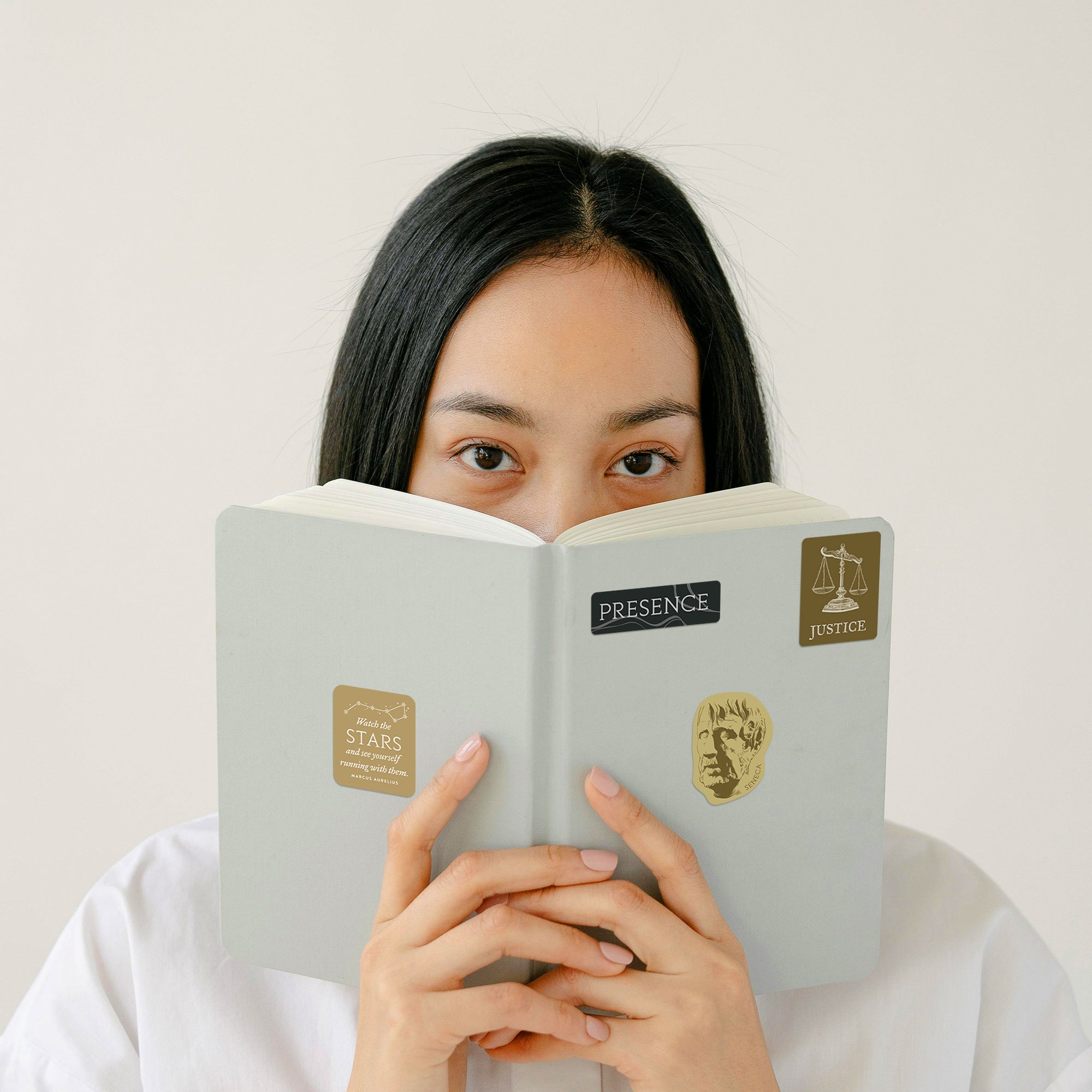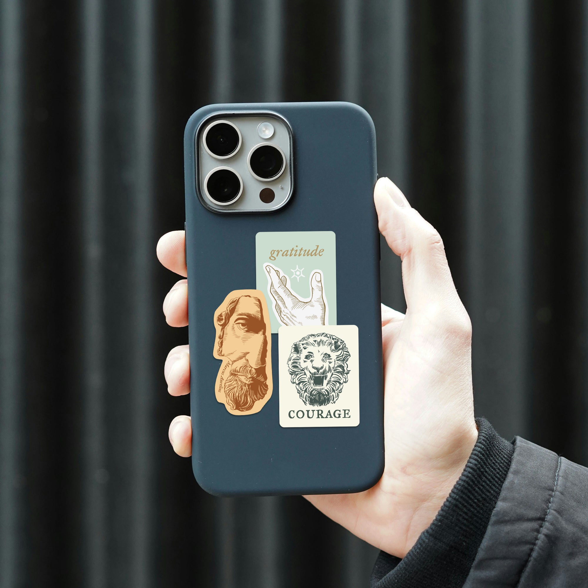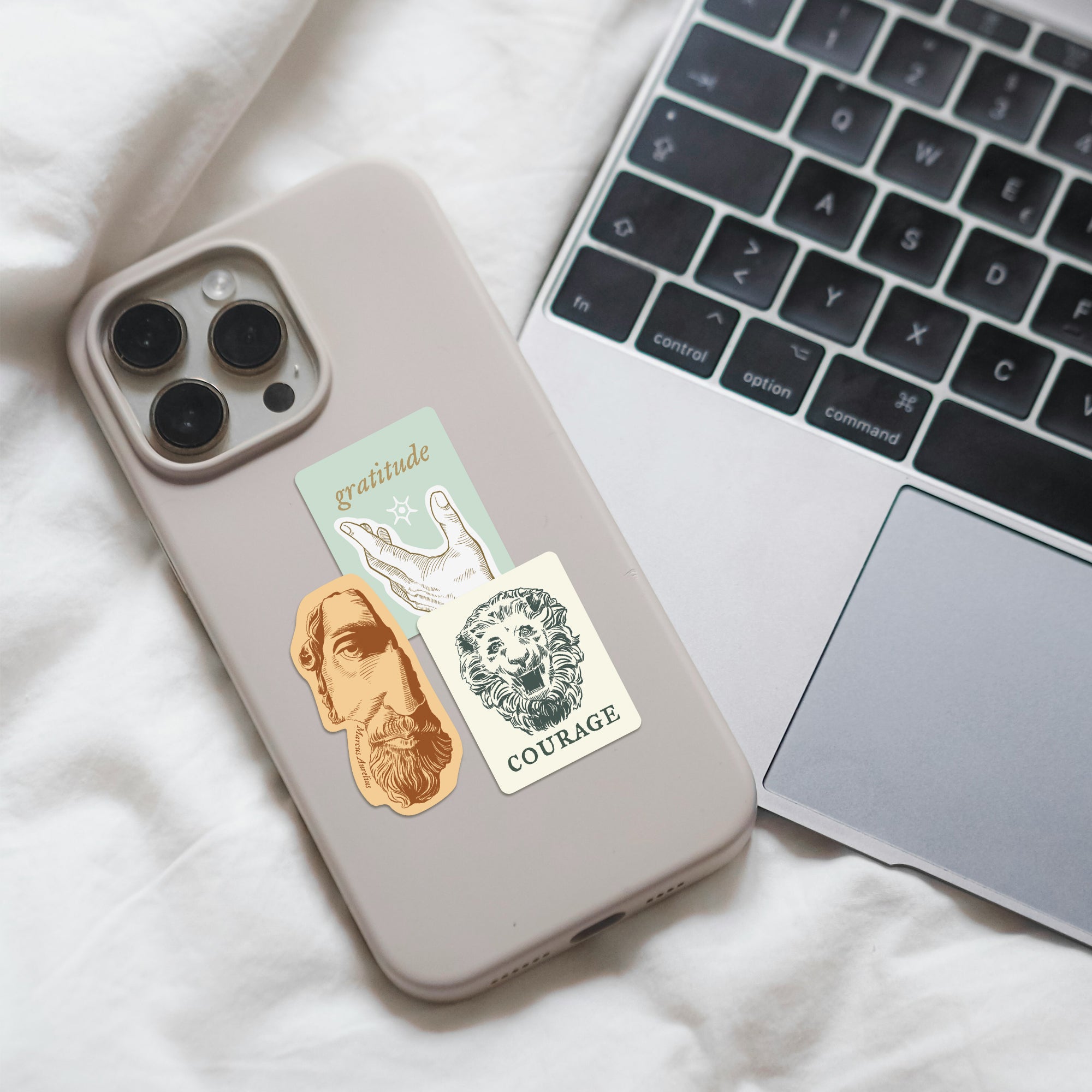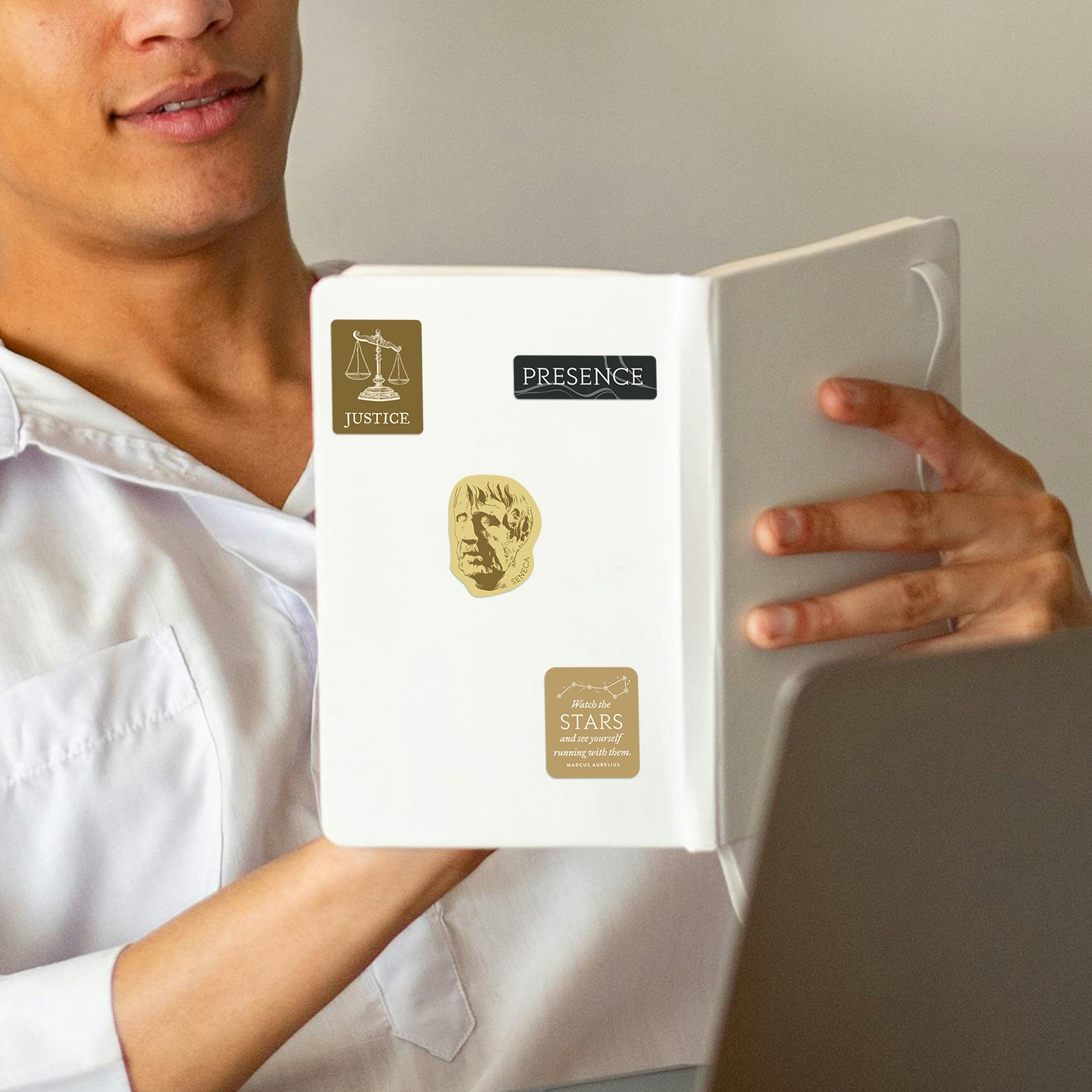 STOIC GUIDANCE FROM THE GREATS. Reflect on enduring quotes from Stoic masters Marcus Aurelius, Seneca, and Epictetus, lending timeless perspectives on control, virtue, and presence. With each sticker, bring their insights into your day-to-day, cultivating a path toward inner peace and purposeful living.