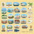 - 28 DIE-CUT TRAVEL STICKERS. From subtle 1-inch accents to bold 2.5-inch designs, these stickers encapsulate Sydney's vibrant energy. Admire the world-famous Opera House & Harbour Bridge, and explore treasures like the Royal Botanic Garden, Luna Park, and Taronga Zoo, each sticker a vibrant ode to the city’s charm.