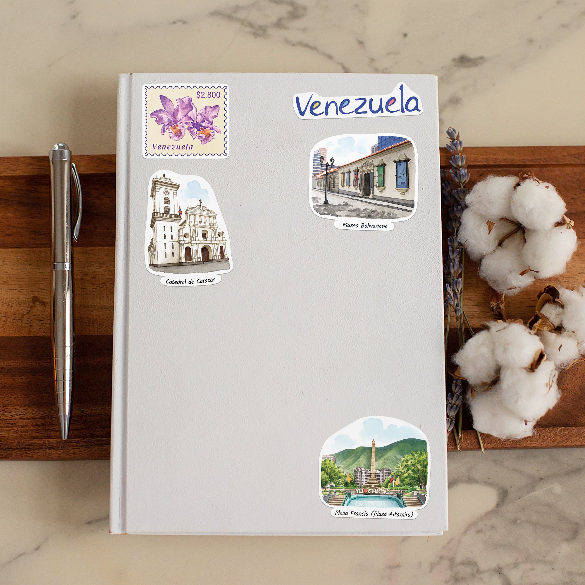 - VIBRANT VENEZUELA IN STICKER FORM. Dive into the heart of Venezuela with this bold 28-piece travel sticker set—featuring iconic landmarks, vivid cultural symbols, and unforgettable natural wonders. From Caracas to Canaima, every sticker brings a new story to your scrapbook, journal, or travel log.