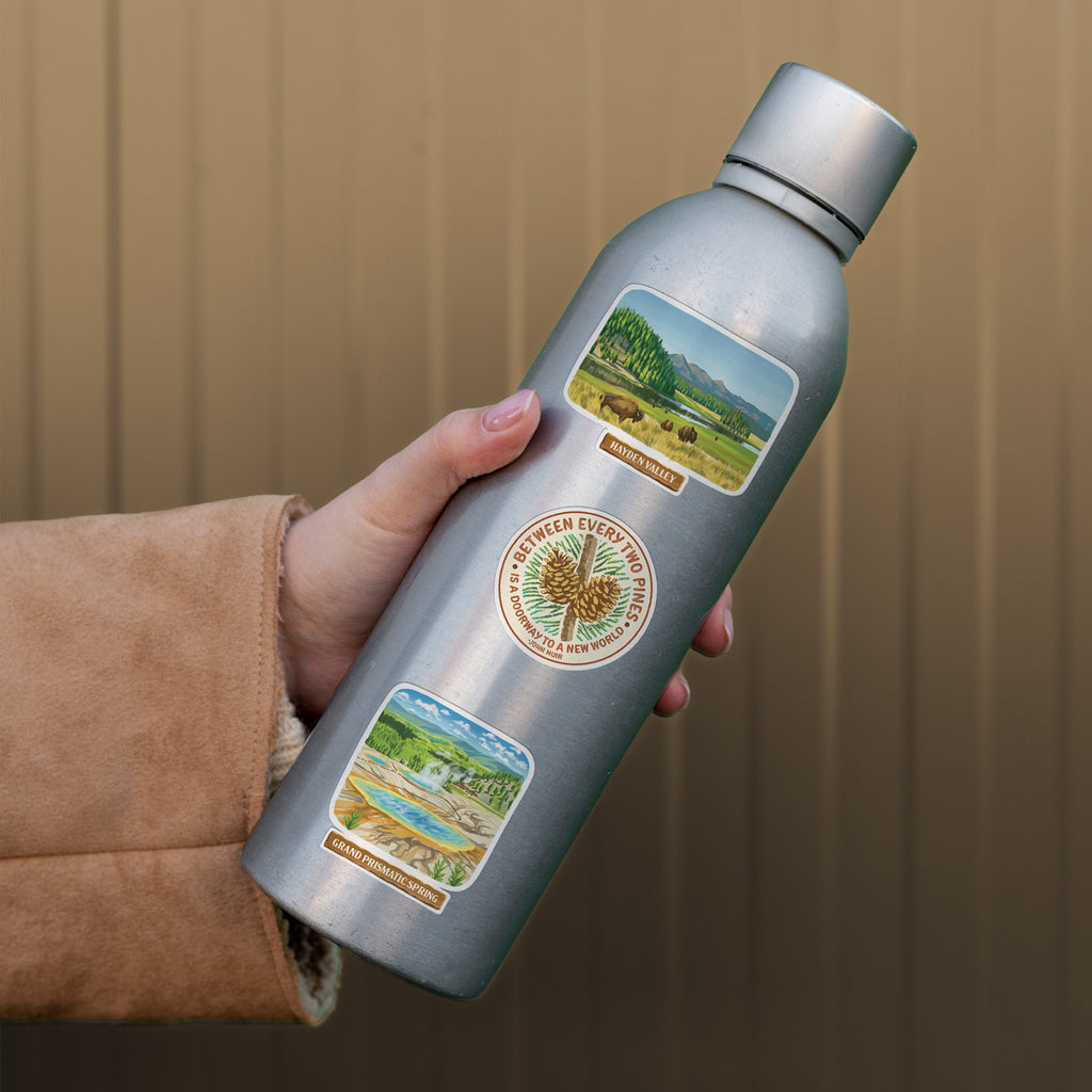 - ARTFUL DETAILS, PERFECT SIZE. Watercolor illustrations ranging 1 to 2.5 inches bring Yellowstone’s beauty to life. Durable and vibrant, they’re ideal for journals, bottles, laptops, and luggage to make every trip unforgettable.
